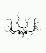 First the anatomical 3D images are processed and segmented in order to label the voxels that belong to the desired arteries. This process is illustrated in the next two images where the maximum intensity projection (MIP) of the images before and after segmentation are shown.