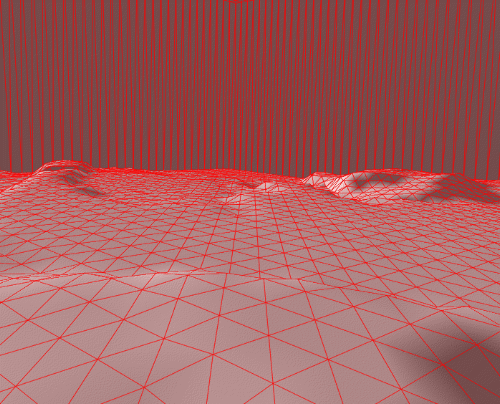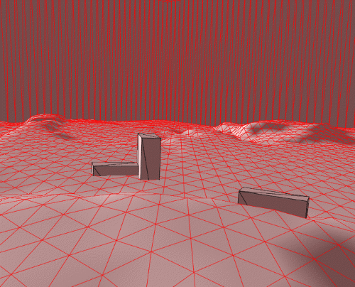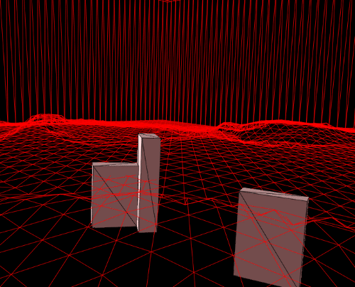 The next image shows the triangulation of the buildings on top of the terrain.