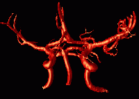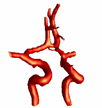 This example illustrates the blood flow calculation in a model of the circle of Willis reconstructed from contrast-enhanced MRA images, using a region growing algorithm.
