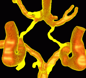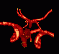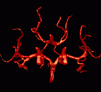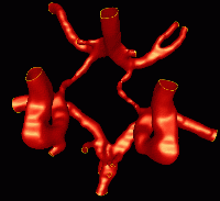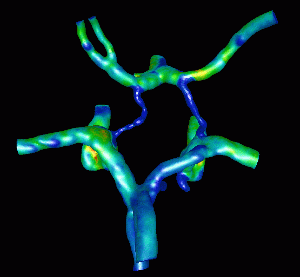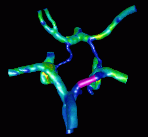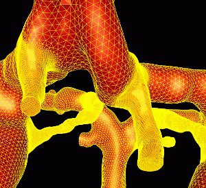 This example illustrates the blood flow calculation in a model of the circle of Willis reconstructed from contrast-enhanced MRA images, using a region growing algorithm.